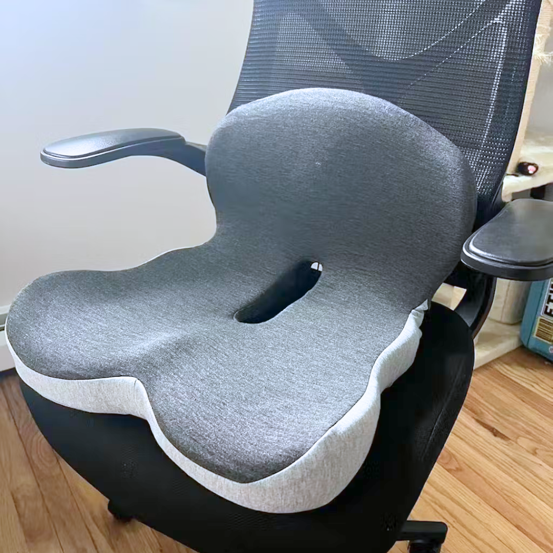En libérant le coccyx, il permet au bassin de se repositionner naturellement et réduit les tensions sur l’ensemble du bas du corps. Dès que vous vous asseyez, le confort revient.